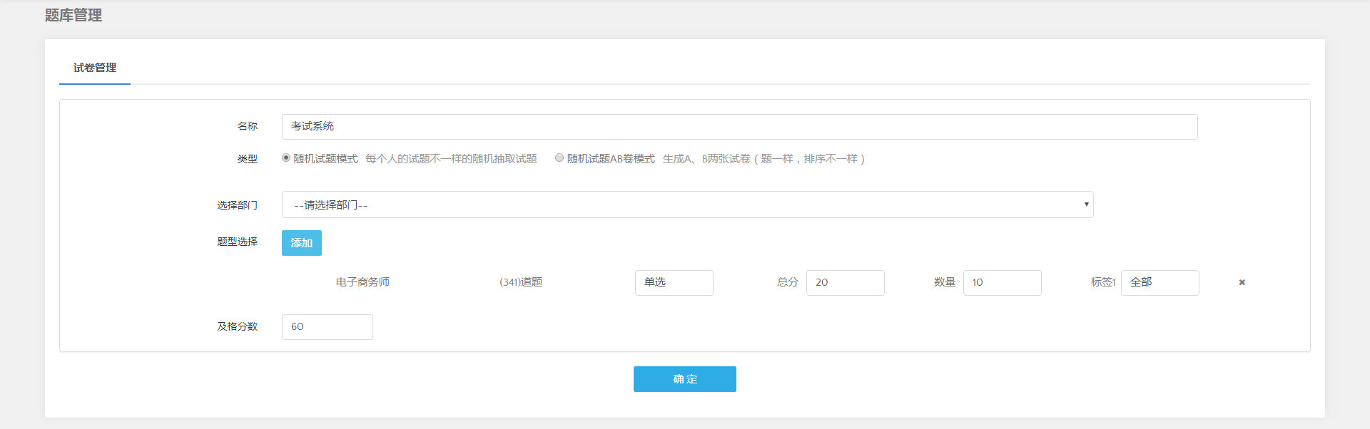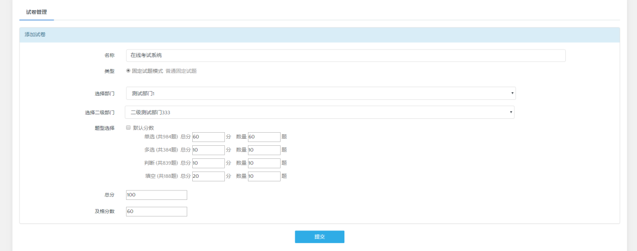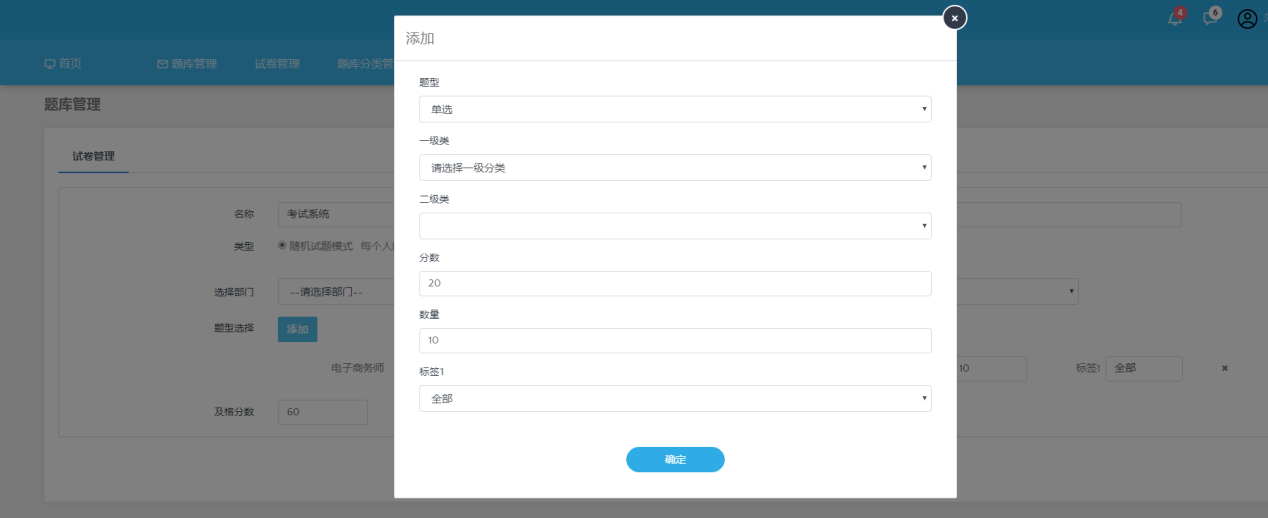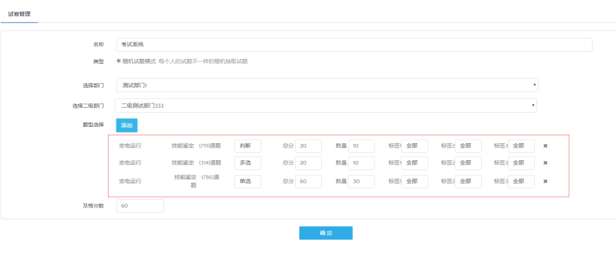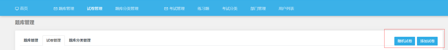 进入页面后点击试卷管理,试卷管理分为随机试卷和添加试卷